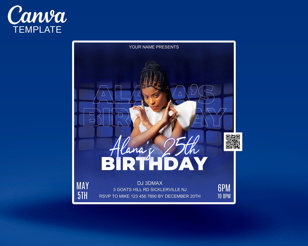 Curate a timeless and stylish event atmosphere with our Editable Blue Birthday Party Club Flyer, Canva Birthday Invite, Blue Birthday Party invitation, Instagram flyer, Club Birthday Flyer. Personalize it to match your unique vision and captivate your audience from the start. Elevate your event promotion – invest in the editable flyer now and turn your celebration into a visual masterpiece!
