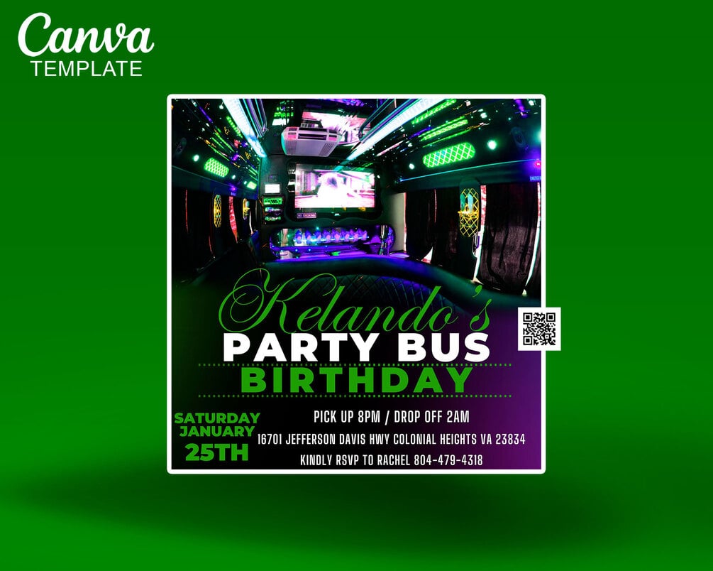 Curate a timeless and stylish event atmosphere with our Party Bus Birthday Invitation, Party Bus Birthday Flyer, Party Bus Theme Flyer, Digital Party Bus Invite, Social Media Party Bus Flyer. Personalize it to match your unique vision and captivate your audience from the start. Elevate your event promotion – invest in the editable flyer now and turn your celebration into a visual masterpiece!