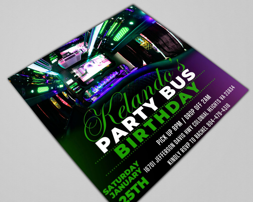 Party Bus Birthday Invitation, Party Bus Birthday Flyer, Party Bus Theme Flyer, Digital Party Bus Invite, Social Media Party Bus Flyer